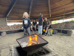 - an all-age Quaker meeting for worship around a campfire in the roundhouse