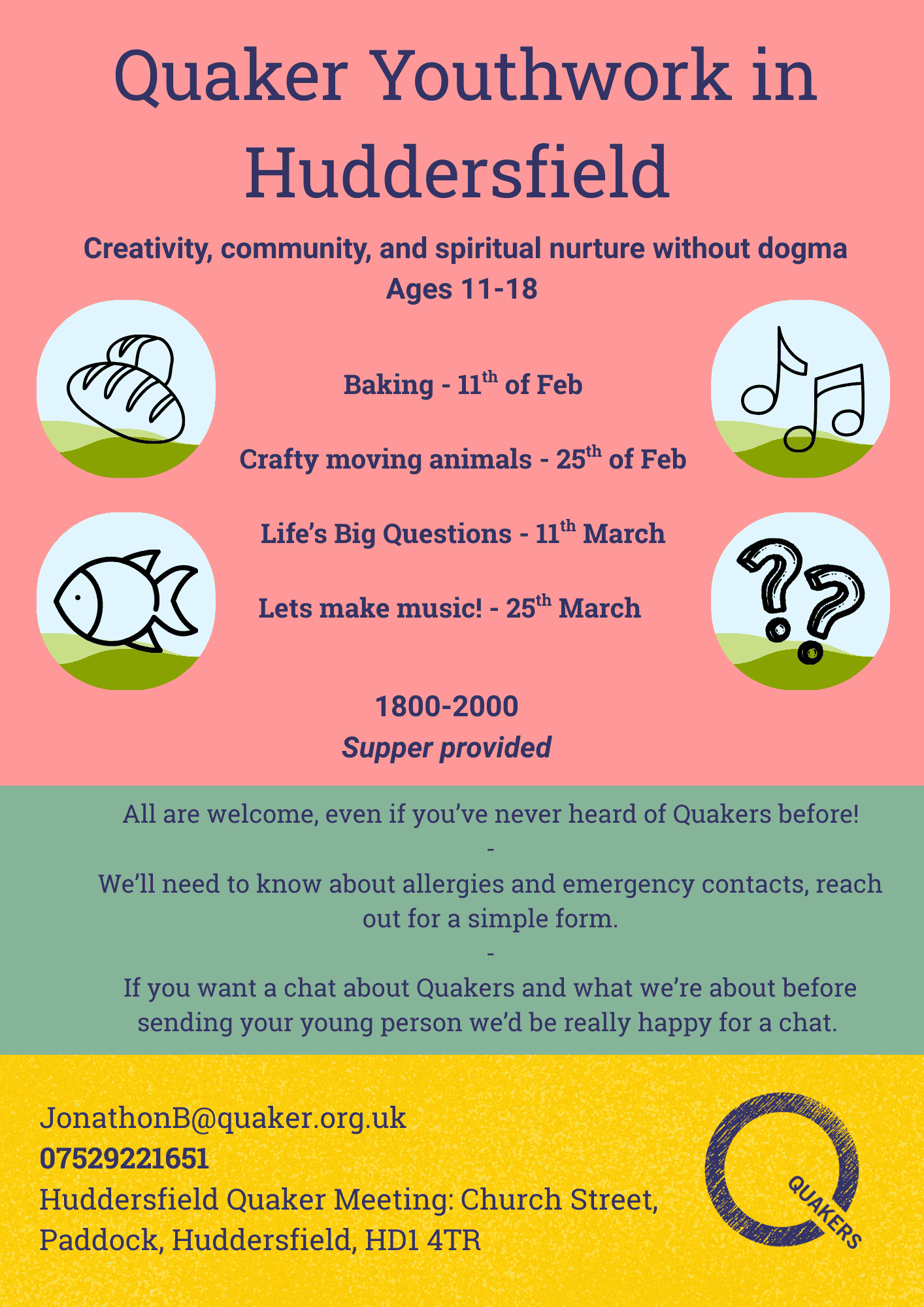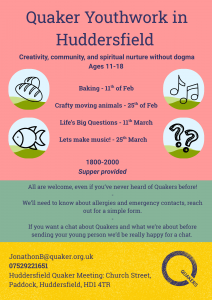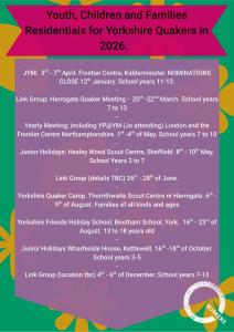 - Various one off events as above. Jo aims to offer a variety of engaging Quaker Youth activities across Yorkshire.